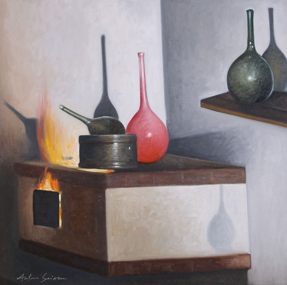 ANTONIO SCIACCA Catania 13/05/1957 Alchimia olio su tela cm. 60x60, firma in basso a sinistra, titolo e firma al retro, dichiarazione d'autenticità dell'artista su foto, opera priva di cornice.