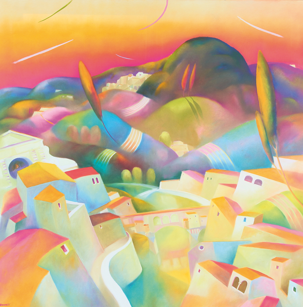 ENRICO BANDELLI Firenze 1941 Cercando di amarti ancora olio su tela cm. 100x100, firma in basso a sinistra, titolo e firma al retro, dichiarazione d'autenticità dell'artista su foto.