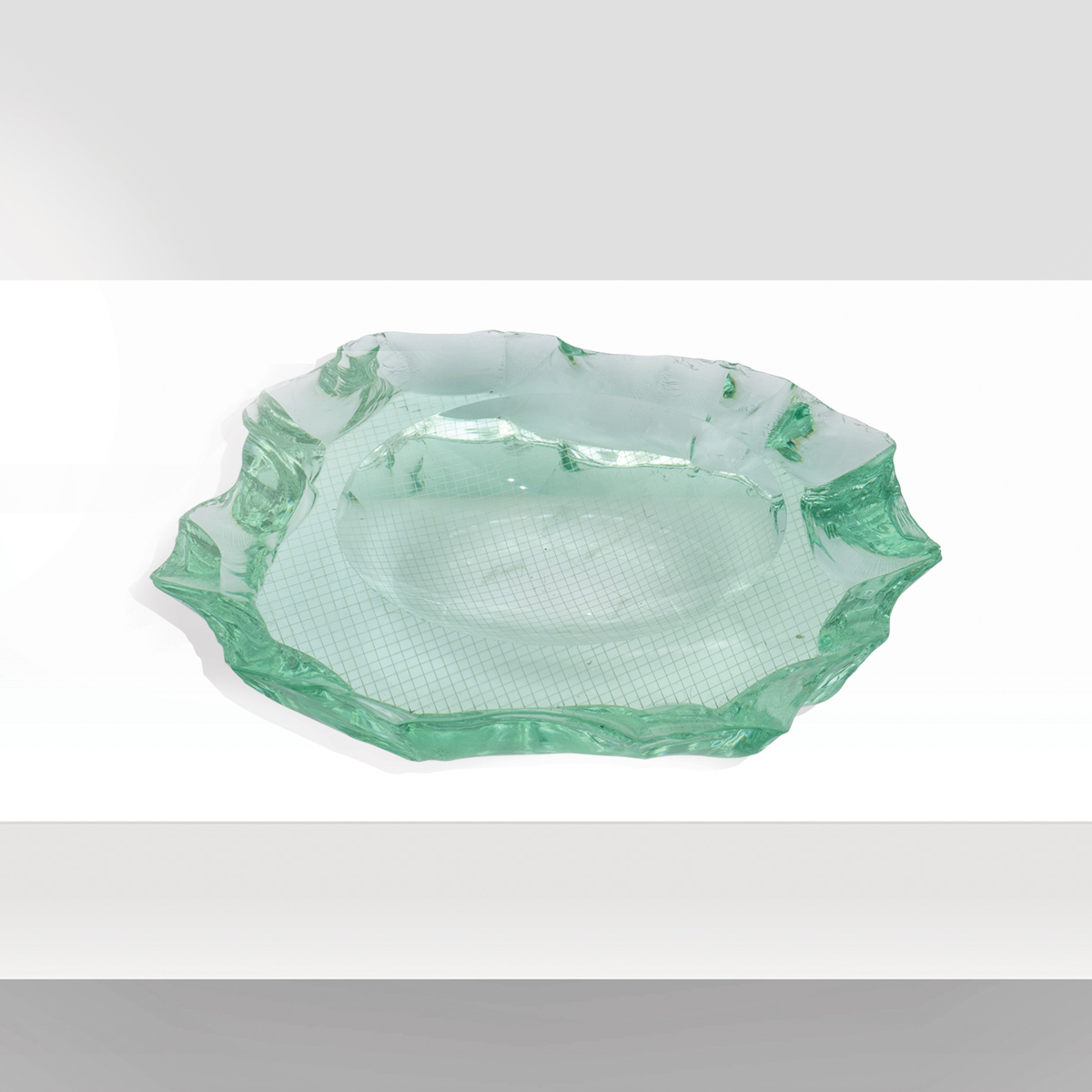 Pietro Chiesa, prod. Fontana ArteItalia, anni 30-40 circa3,5x25x24 cm.posacenere in cristallo molato e colorato, fondo retinato