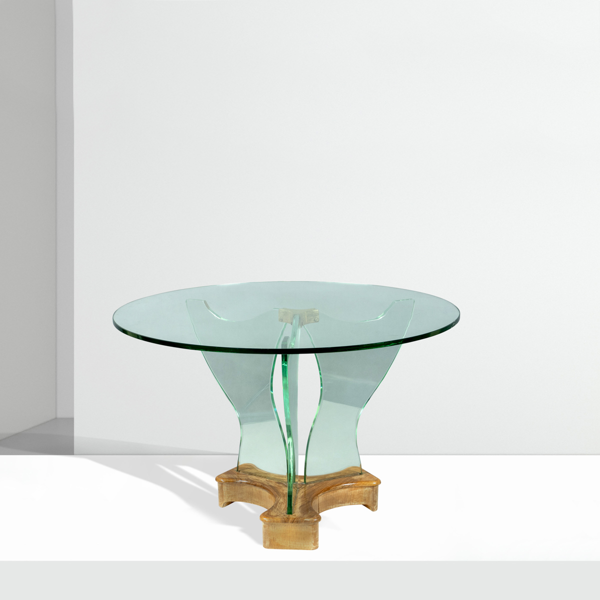 Pietro Chiesa, prod. Fontana Arte, attribuitoItalia, anni 30-4051x81 cm.tavolino circolare in vetro, ottone e legno