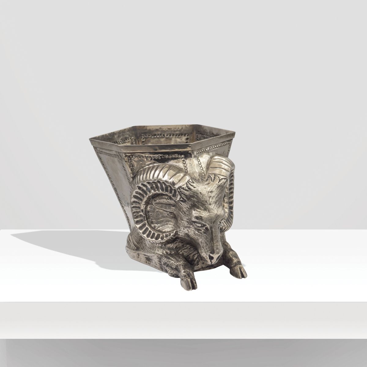 Gabriella CrespiItalia, anni 7015x25x19 cm.cachepot modello Muflone, metallo argentato, firmato