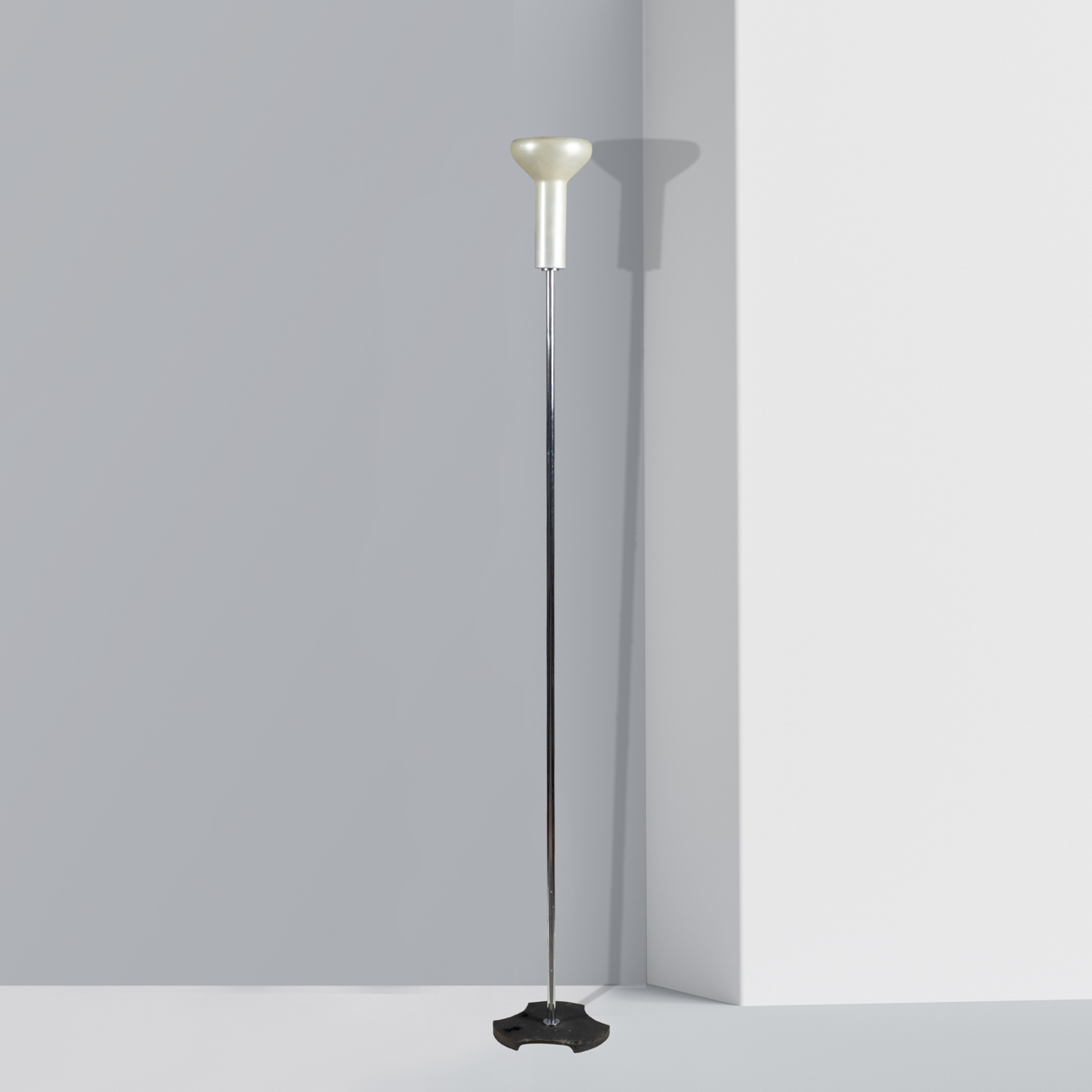 Gino Sarfatti, prod. ArteluceItalia, 1956h. 182 cm.lampada da terra mod. 1073, metallo cromato, alluminio lucidato e ghisa.