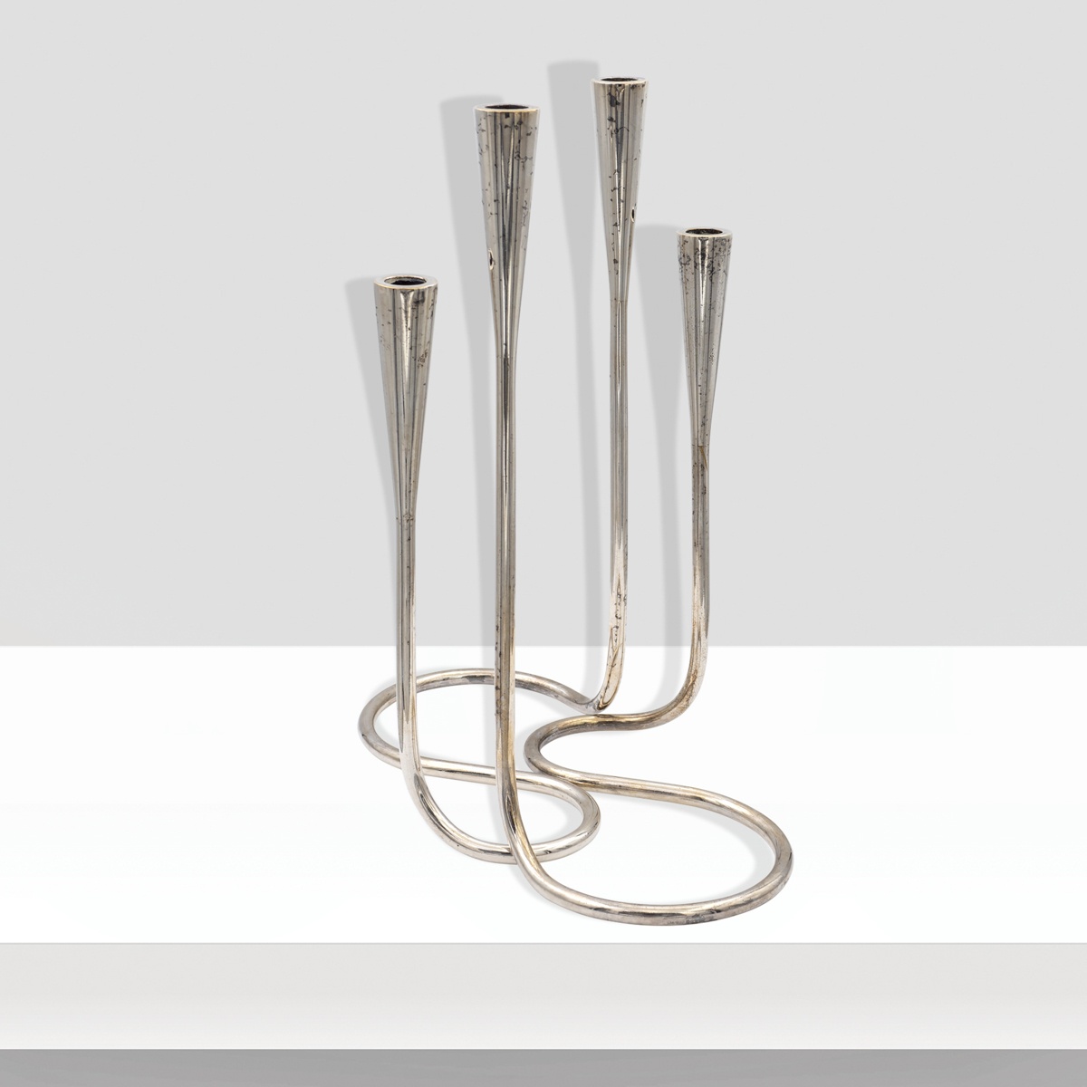 Manifattura danese (2)anni 70-80h. 26 cm.coppia di candelabri in metallo argentato