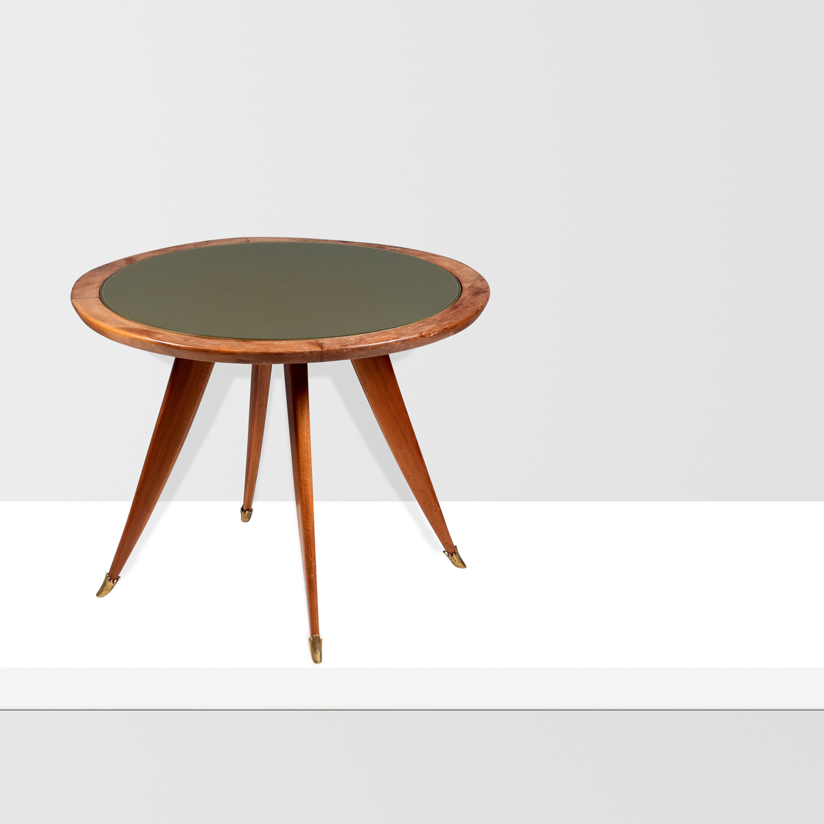 Manifattura italianaanni 50-6050x64 cm.tavolino basso in noce, ottone e vetro colorato