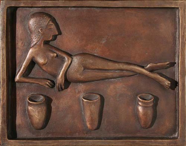GIACOMO PIUSSI Udine 1967 Donna distesa scultura in bronzo cm. 36x45x5,5; esemplare 1/4, firma in basso, dichiarazione d'autenticità della Finarte-Semenzato allegata.
