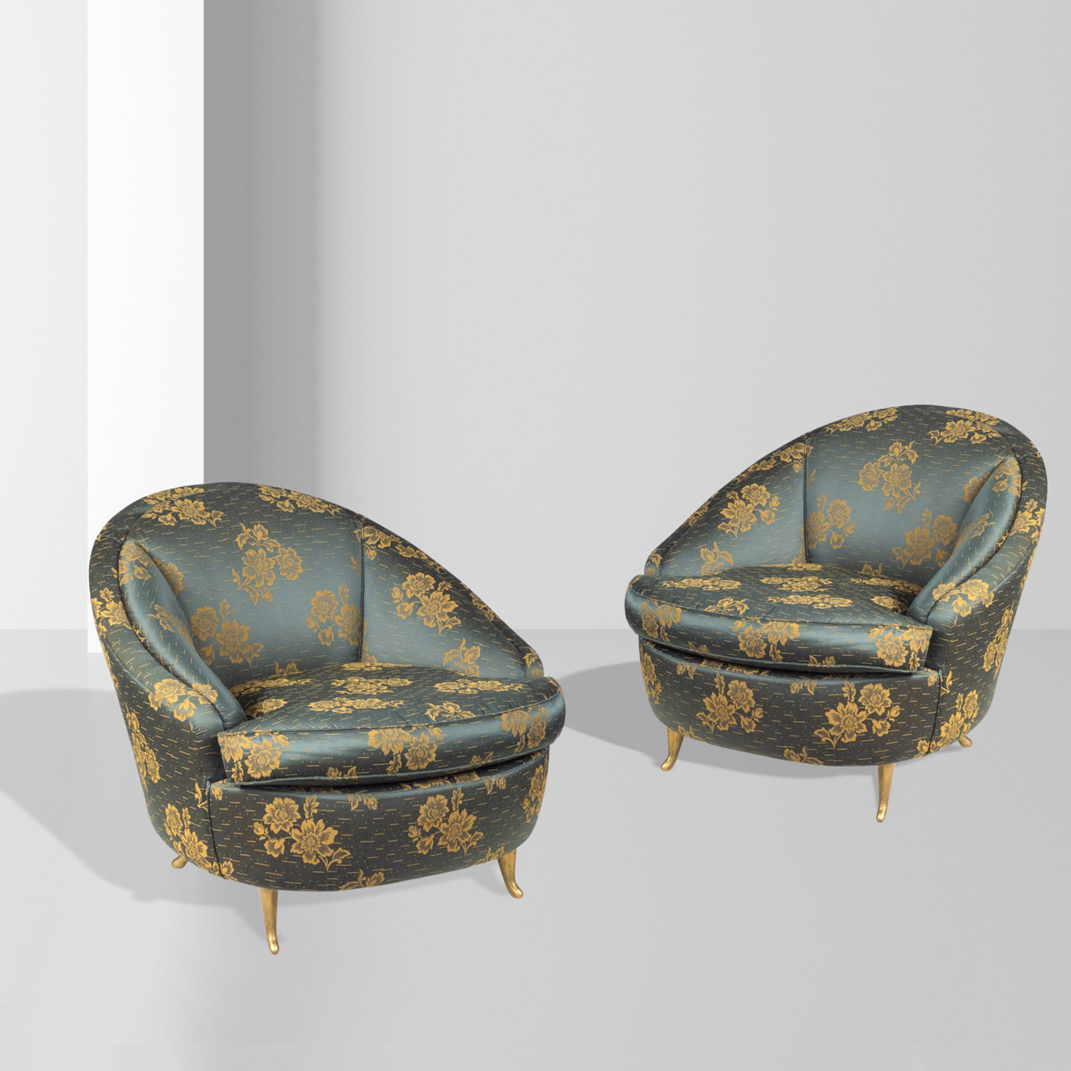 I.S.A. (2)Italia, anni 5080x80x75 cm.coppia di poltrone ottone e tessuto...