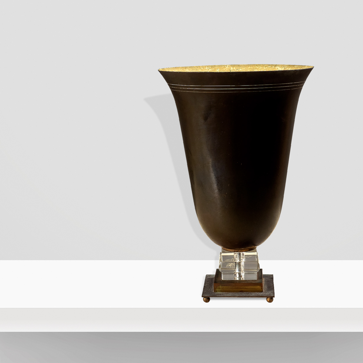 Manifattura italianaanni 60h. 37,5 cm.lampada da tavolo in ottone brunito e cristallo, lievi usure