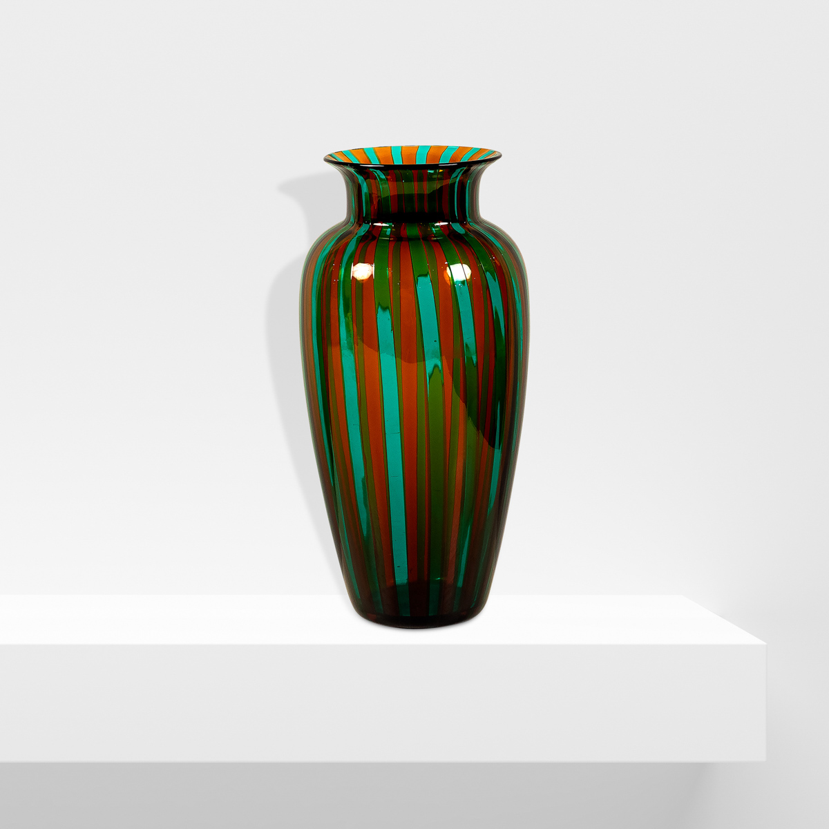 VeartVenezia, 1980 circah. 29 cm.vaso in vetro a canne verde e arancio, firma...