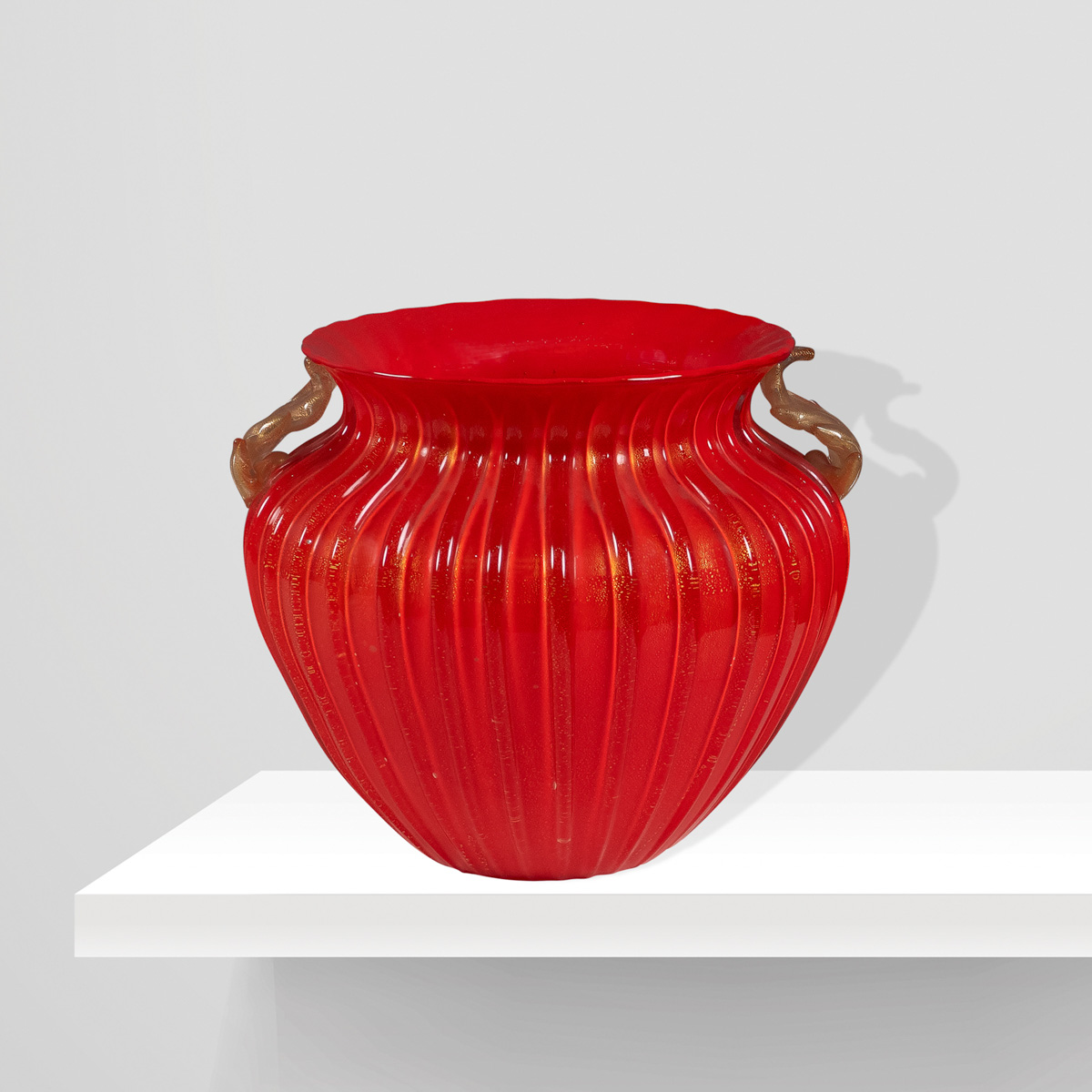 SegusoMurano , XX Sec.21x25 cm.vaso in vetro rosso e oro