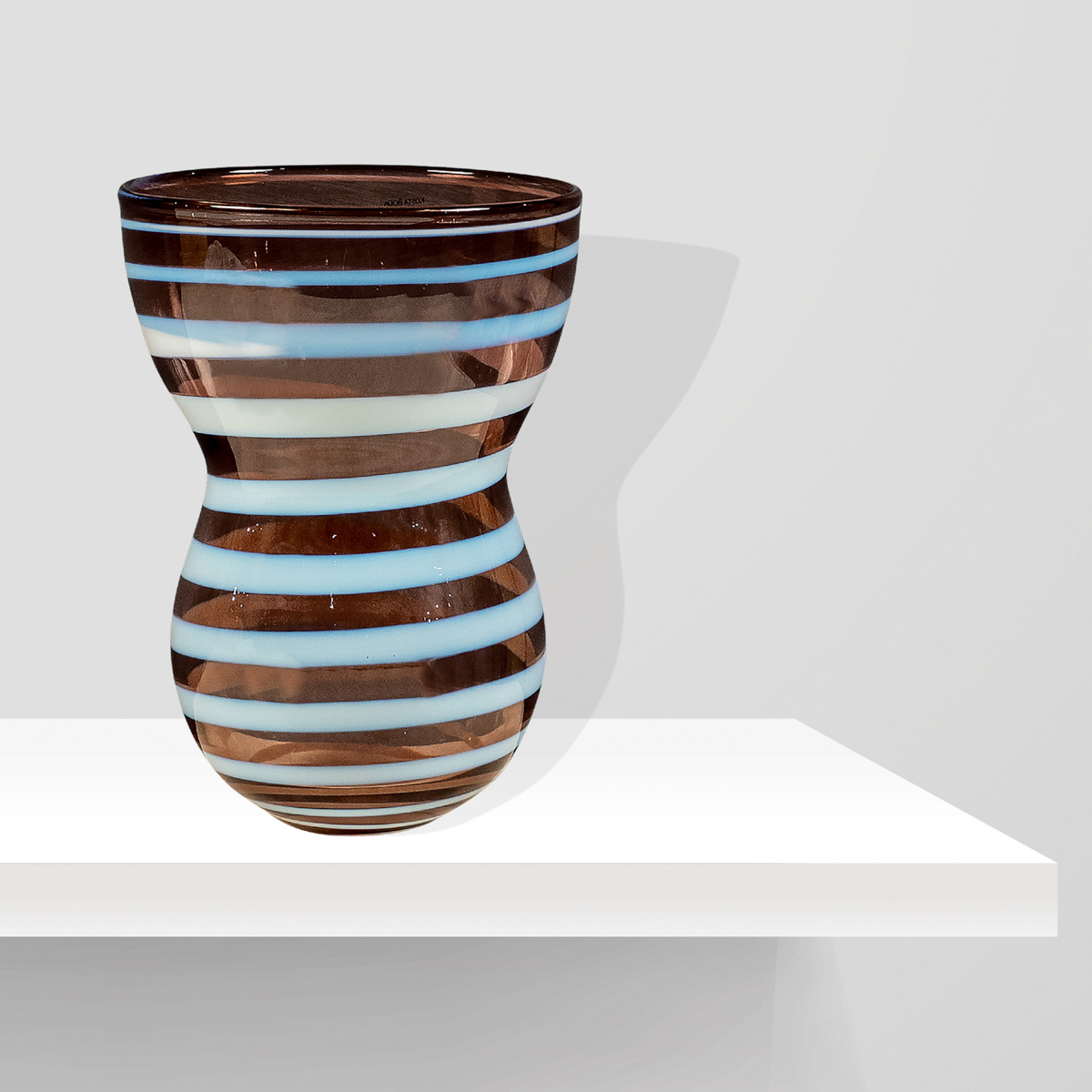 Gunnel Sahlin, prod. Kosta BodaSvezia, anni 80-9026,5x19 cm.vaso in vetro a fasce, firma a punta Kosta Boda G. Sahlin 49839