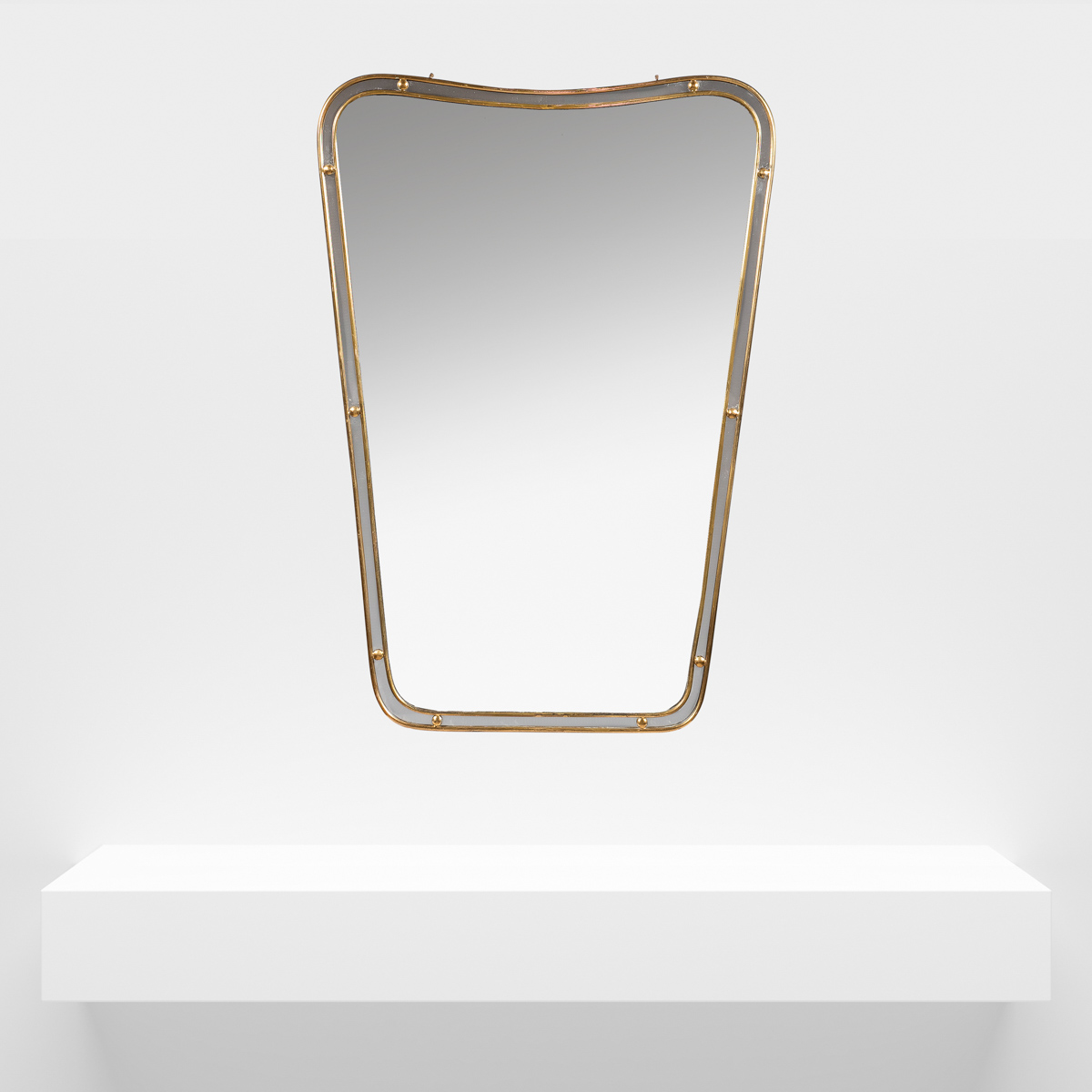 Manifattura italianaanni 5085x59 cm.specchio in legno, ottone e cristallo specchiato