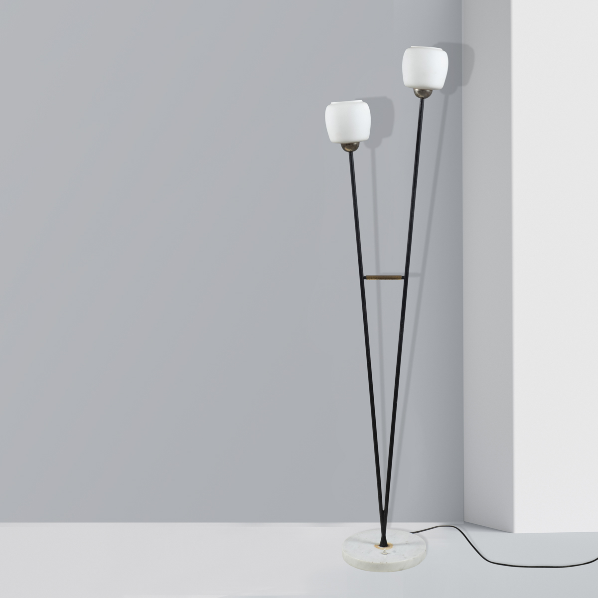 Stilnovo, attribuitoItalia, anni 60h. 149 cm.lampada da terra, metallo verniciato, ottone, vetro opalino, marmo