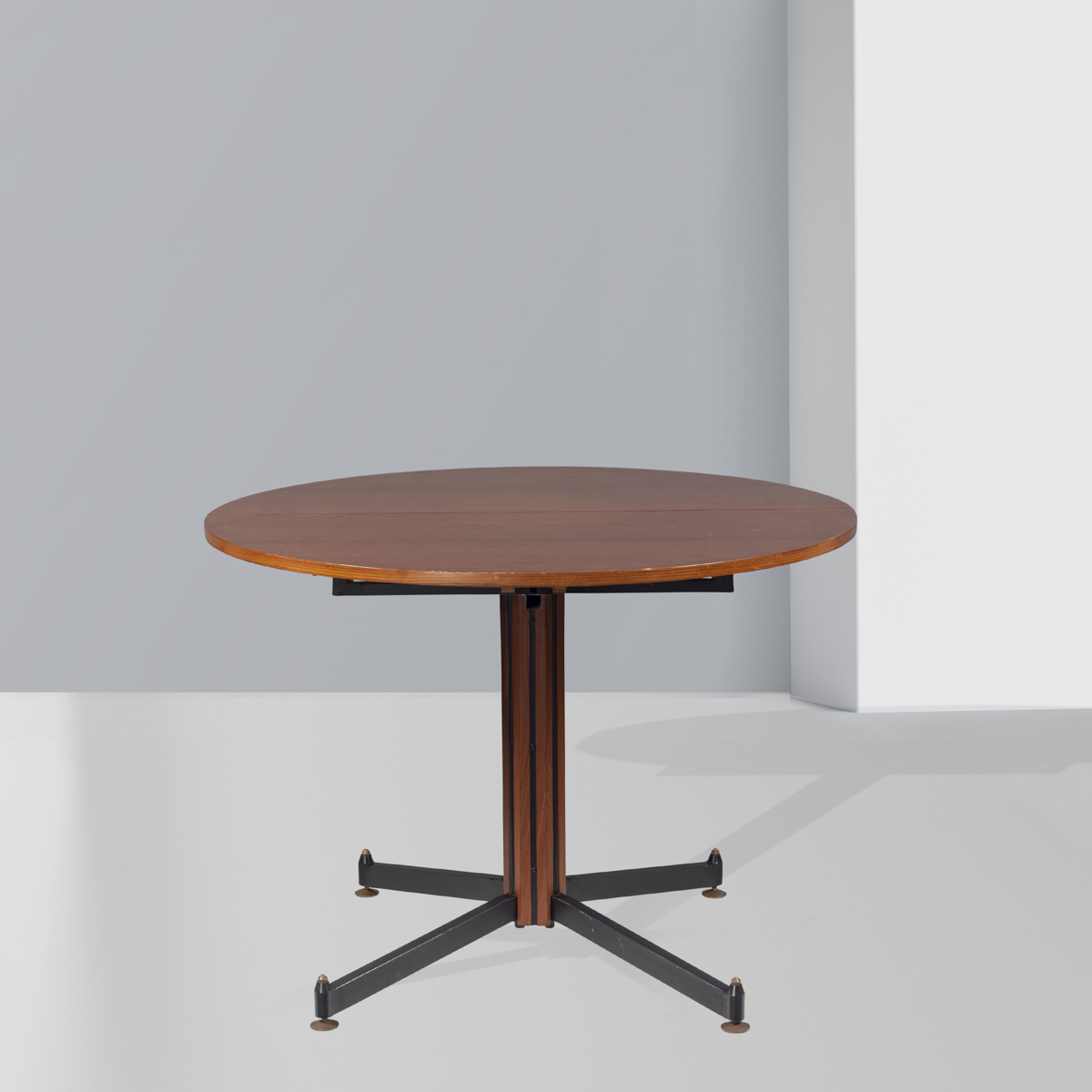 Sergio MazzaItalia, anni 50-6079x108 cm.tavolo allungabile in mogano, base in metallo smaltato nero e ottone, completo di prolunga 108x40 cm.