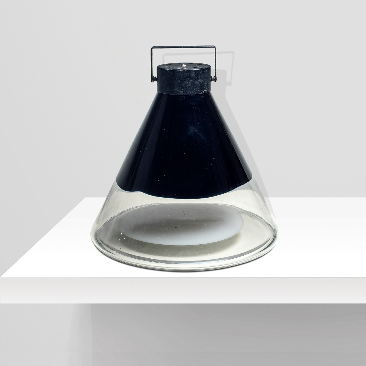 AV MazzegaMurano, anni 7040x42 cm.lampada da tavolo vetro trasparente, bianco e nero, metallo verniciato