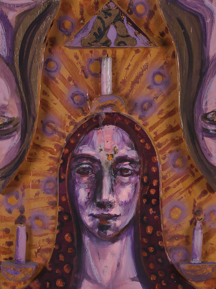 BRUNO CECCOBELLI Montecastello Vibio (Pg) 02/09/1952 Tris il luce, 1993 legni sagomati, cere e stoffe dipinte applicati su tavola cm. 54x40x6,5; firma, titolo e anno al retro, (fotocopia) della dichiarazione d'autenticità e archivio dell'artista allegata, opera priva di cornice.