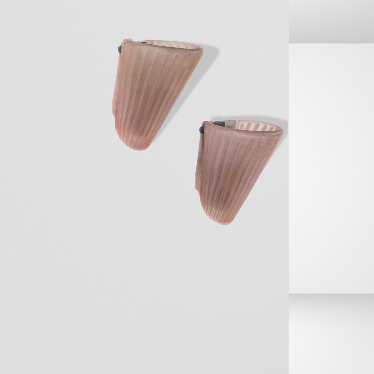 Manifattura francese (14)anni 6023x17,5x15 cm.quattordici lampade da muro in vetro rosa satinato e metallo dipinto