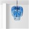 Manifattura italianaanni 7070x40 cm.lampada a sospensione, metallo cromato, elementi in vetro trasparente e blu