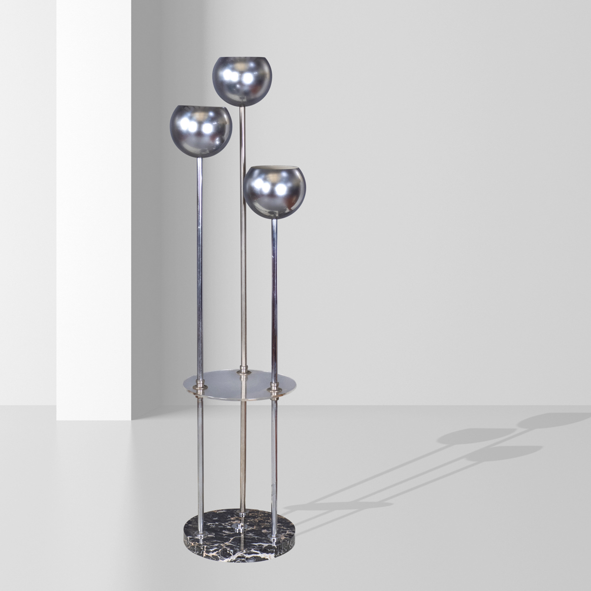 Manifattura italianaanni 70h. 145,5 cm.lampada da terra in acciaio, pespex e marmo