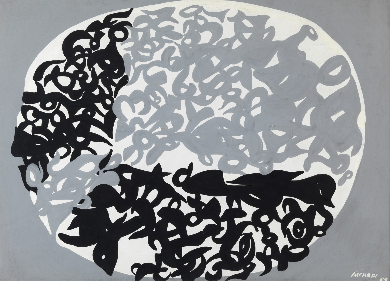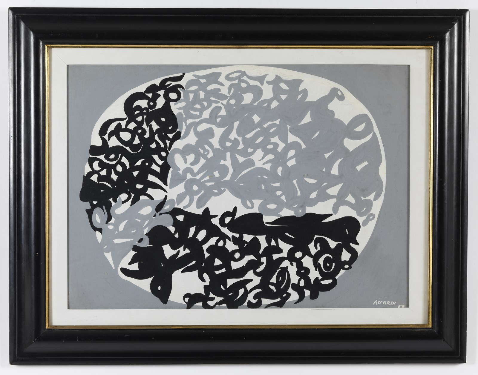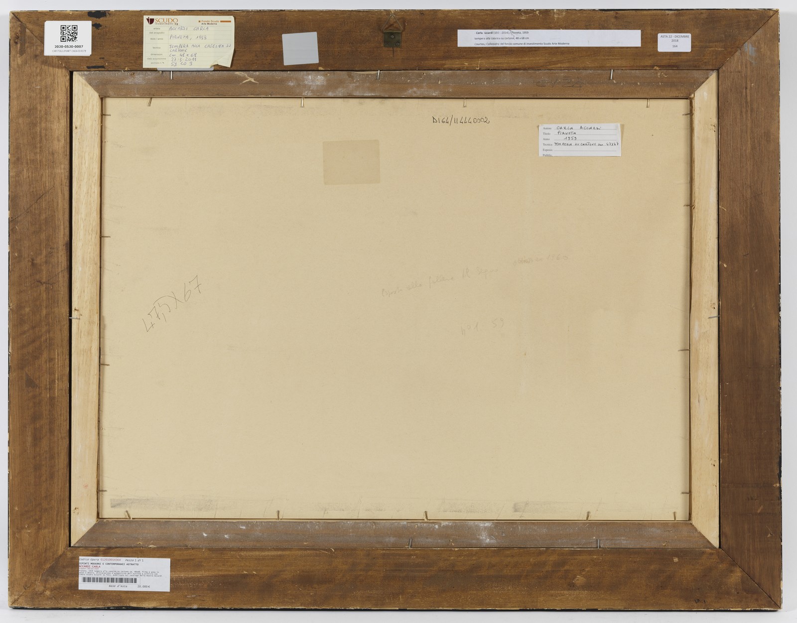 ACCARDI CARLA (1924 - 2014) Pianeta. 1959. Tempera alla caseina su cartone. Cm 68,00 x 48,00. Firma e anno in basso a destra. Autentica dell'artista su fotografia riportante il relativo numero d'inventario e il timbro Studio Accardi. Pubblicazione: Catalogo della mostra Accardi Kunstverein Ludwigshafen am Rhein e.V., 7 Settembre -22 Ottobre 1995, Stadtische Galerie Wolfsburg, Istituto Italiano di Cultura Wolfsburg 4 Febbraio - 8 Aprile 1996, p.108. Esposizioni: Galleria d'arte Il Segno, 1960. (lotto con provenienza extra ue soggetto al 10% di tasse sull'importazione da aggiungere alle commissioni dell'acquirente)