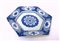 Piatto esagonale in porcellana bianca e blu decorato a motivi floreali (d. cm 2