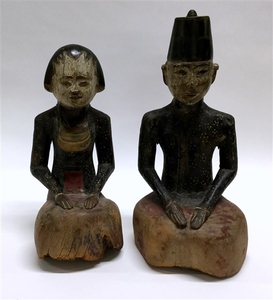 Manifattura indonesiana, secolo XIX/XX Gruppo di due figure in legno policromo