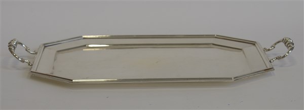 Lot 96 | Vassoio biansato in argento liscio di forma ottagonale manici di forma sagomata
