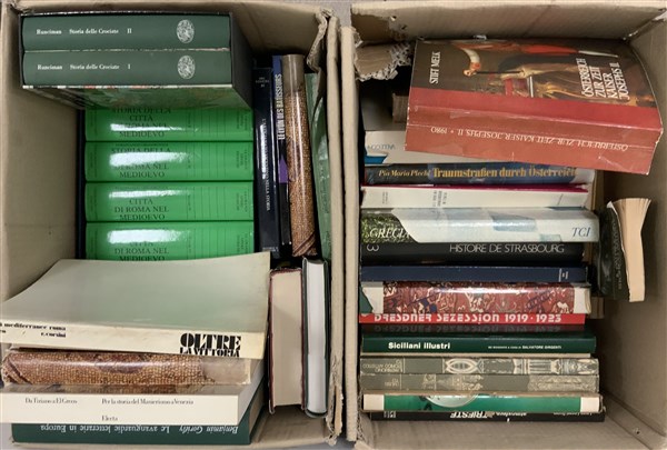 Lotto composto da due cartoni contenenti numerosi volumi inerenti l'arte e la storia locale