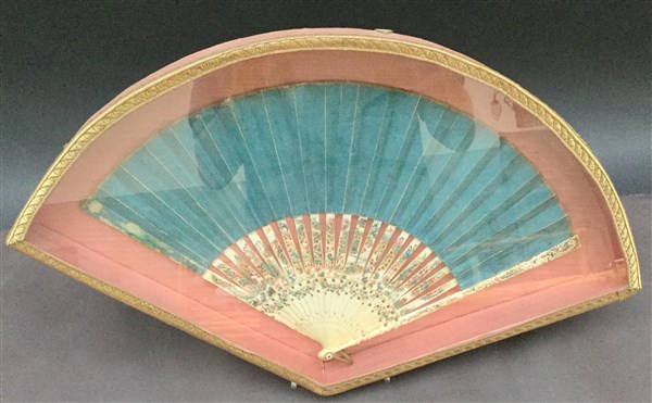 Due ventagli di epoche e decori diversi, in teche (difetti)