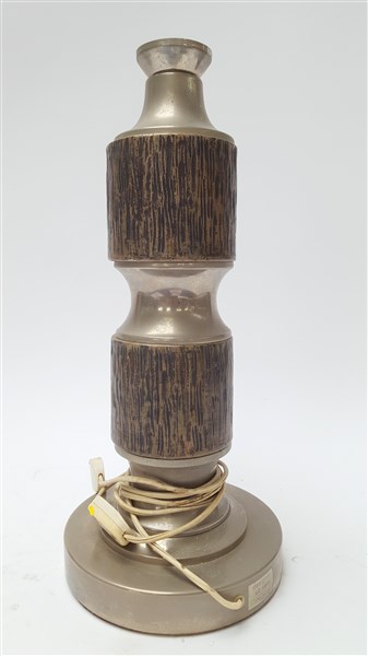 Base di lampada da tavolo in metallo nichelato con inserti in rame con superficie lavorata a corteccia. Italia, anni '70. (h cm 43) (difetti e mancanze)