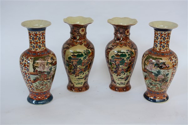 Lotto di due coppie di vasi in ceramica cinese in stile Satsuma, secolo XX (h c