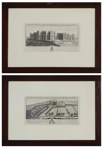 Coppia di stampe raffiguranti scorci di castelli inglesi (cm 20x40) in cornice