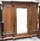 Armadio a tre ante riquadrate di cui quella centrale a specchio. Due cassetti sul fronte, montanti a mezza colonna intagliati a motivi fogliacei, piedi a cipolla (cm 230x228x62) (difetti)