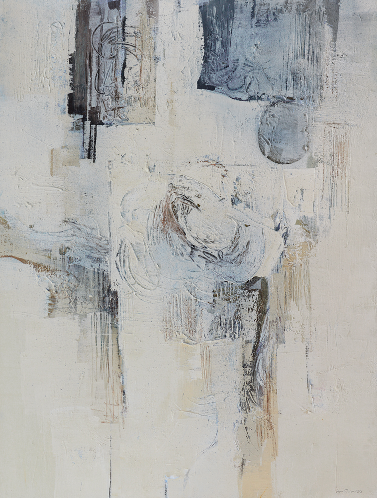 MARIO BIONDA Torino 1913 - Penango (AT) 1985 Parete bianca, 1973 polimaterico su tela cm. 130x100, firma in basso a destra, firma, titolo e anno al retro, dichiarazione d'autenticità della Galleria d'Arte Antares che ne dichiara l'acquisizione diretta dall'artista su foto, pubblicato sul catalogo della mostra "Mario Bionda opera dal 1956 al 1978" tenutasi nel maggio-giugno 1995 presso la Galleria Morone 6.