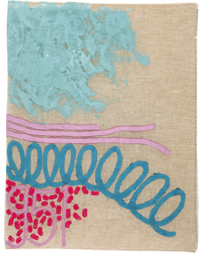 GIORGIO GRIFFA Torino 29/03/1936  Tre linee con arabesco n. 951, 1993 acrilico su tela cm. 96x73, firma e anno al retro, dichiarazione d'autenticità dell'artista e Archivio Giorgio Griffa su foto.