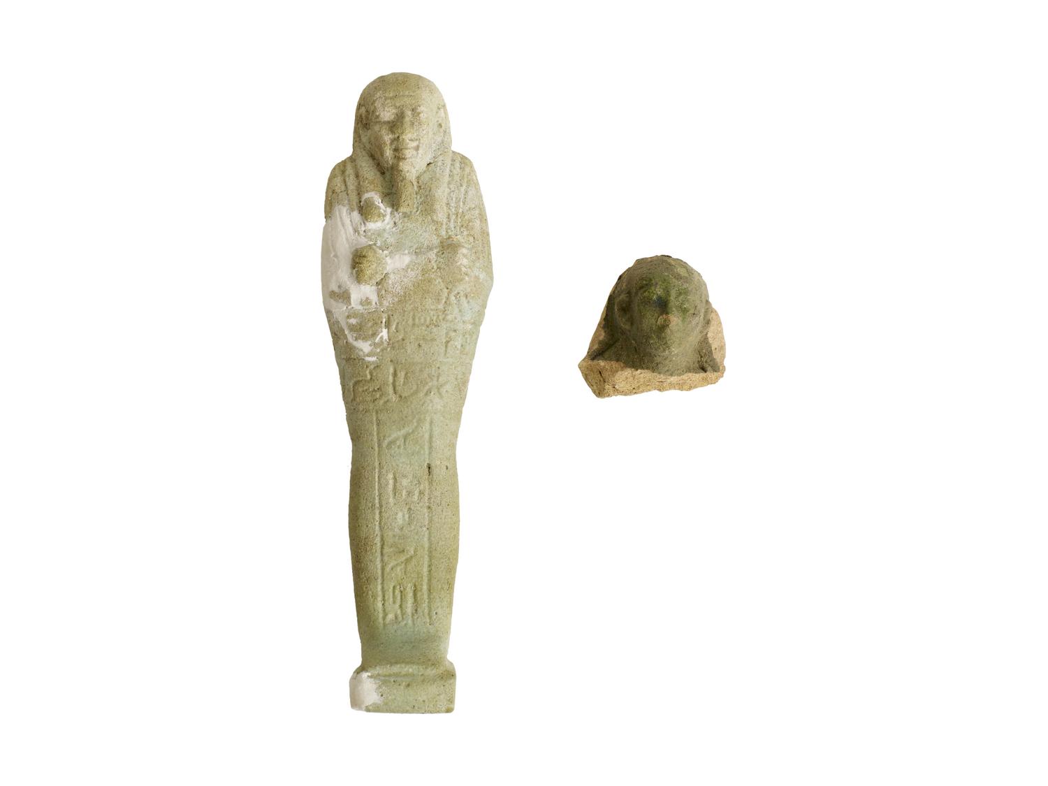 MATERIA E TECNICA: faience egiziana verdastra, modellato a stampo