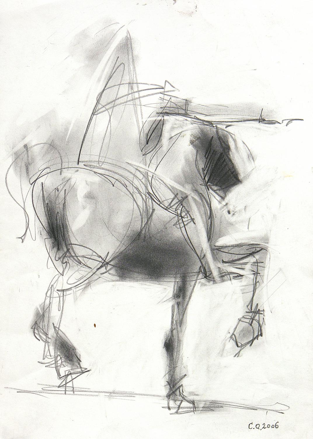 Cristiano Quagliozzi SOLDATO A CAVALLO grafite su carta, cm 30x21 siglato e...