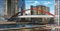 Ignoto VEDUTA DI CITTA' CON PONTE acrilico su tela, cm 40x83 sul retro: firma...