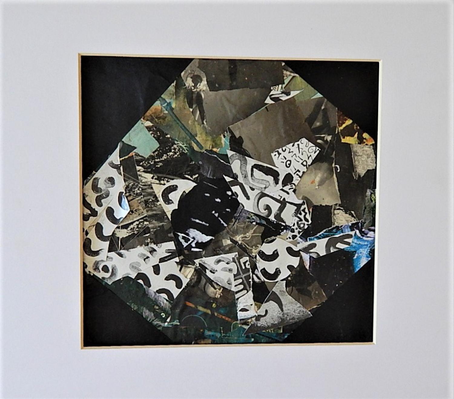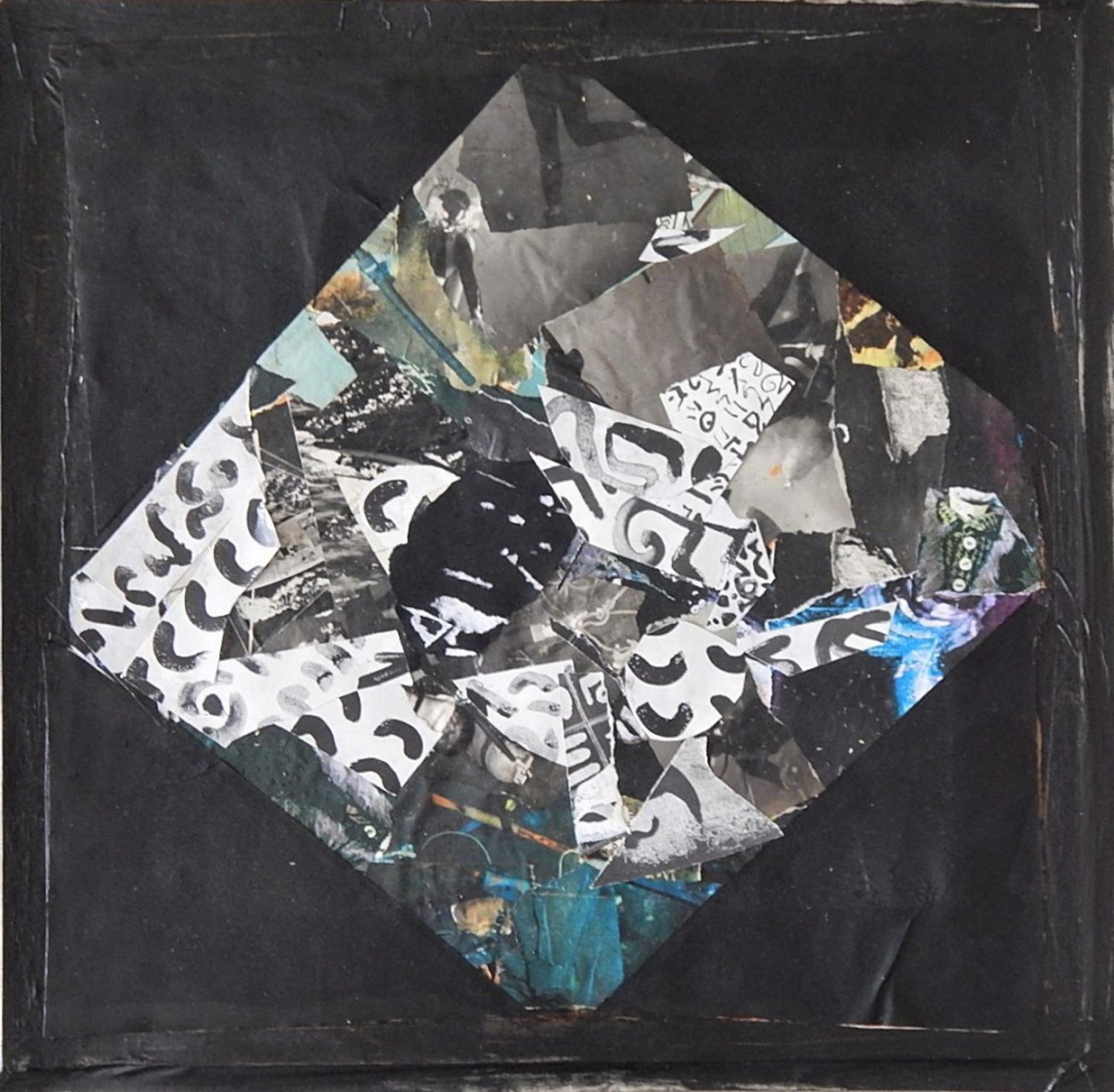 tecnica mista e collage su cartone, cm 50x50 su cartone cm 55x60