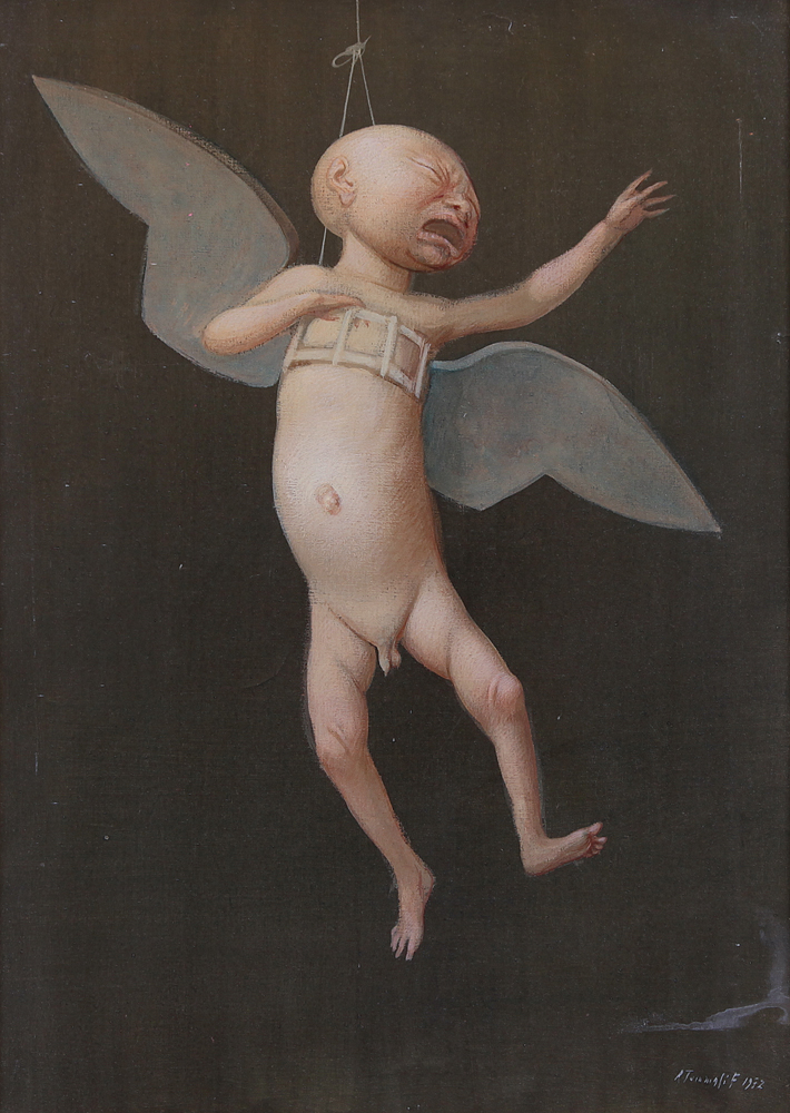 FERRONI RICCARDO TOMMASI Pietrasanta (Lu) 04/12/1934 - Camaiore (Lu) 24/02/2000 Venere morta amore (studio), 1972 olio su tela cm. 70x50, firma e anno in basso a destra, titolo e timbro della Galleria Contemporart (Nonantola) al retro, dichiarazione d'autenticità della Galleria d'Arte Forni su foto.