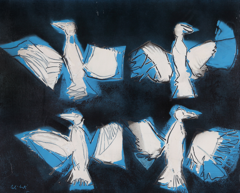 GIORGIO CELIBERTI Udine 19/11/1929 Visione multipla tecnica mista su tela cm. 65x80, firma in basso a sinistra, titolo e firma al retro, dichiarazione d'autenticità dell'artista su foto.