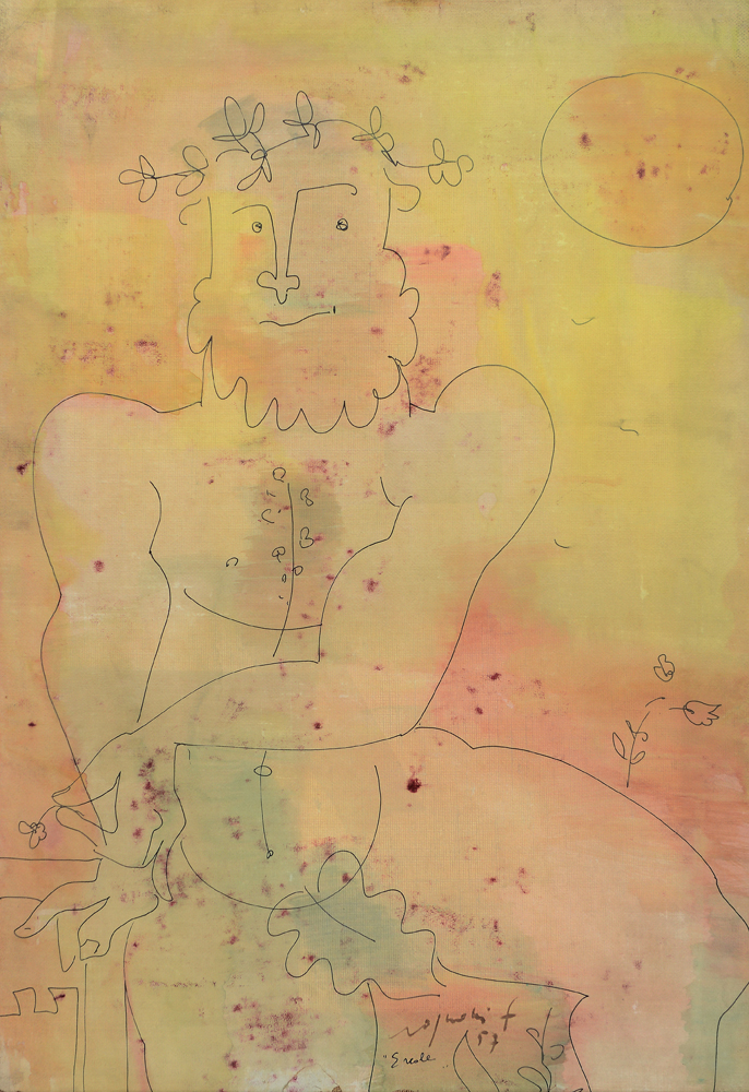 FRANCO ROGNONI Milano 20/09/1913 - Milano 11/03/1999 Ercole, 1957 acquerello su carta intelata cm. 73x50, firma, titolo e anno in basso al centro, etichetta della Galleria Annunciata (MI) al retro, dichiarazione d'autenticità e provenienza della Galleria Annunciata (MI) su foto, pubblicato sul catalogo della mostra "Arte a rate" tenutasi nel 1972 presso la Galleria Annunciata (MI), tavola 7.