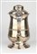 corpo a balaustro liscio con coperchio duomato, poggiadito traforato, manico a voluta con terminale a cuore. Serie completa di marchi Londra 1791-92, argentieri Peter & Ann Bateman. Diametro piede 11 cm, altezza 20,5 cm. Peso 735 gr. Stato di conservazione: **** buono.