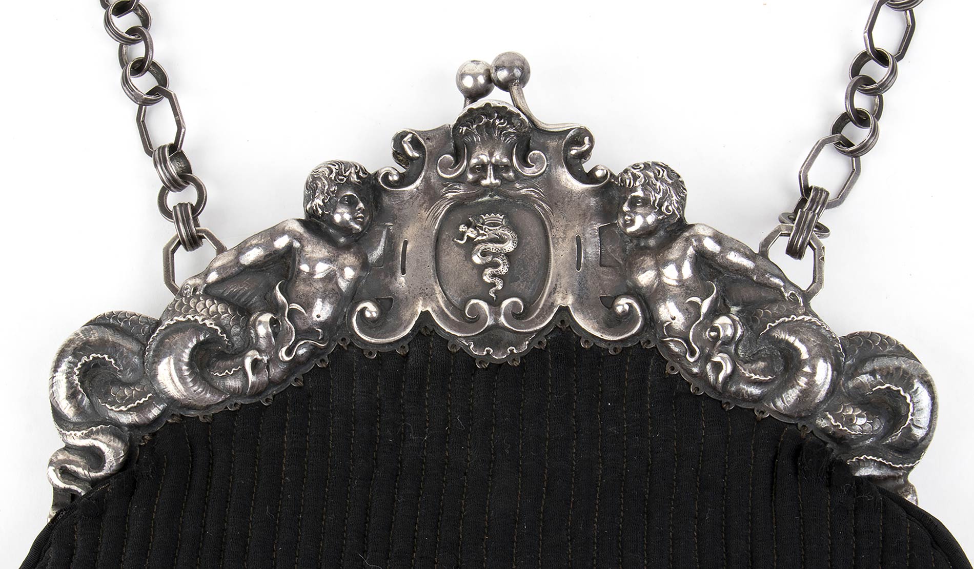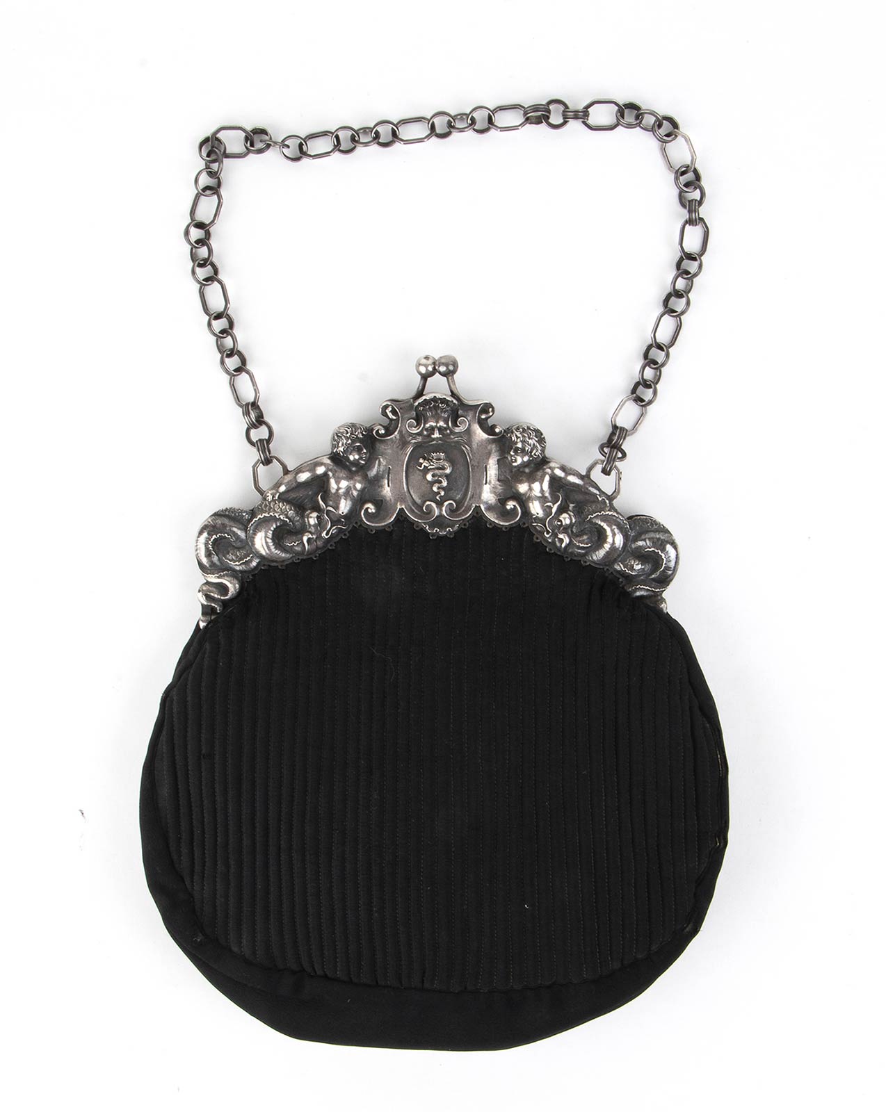 Borsetta italiana in seta nera con chiusura in argento - Famiglia Crivelli Visconti 1936