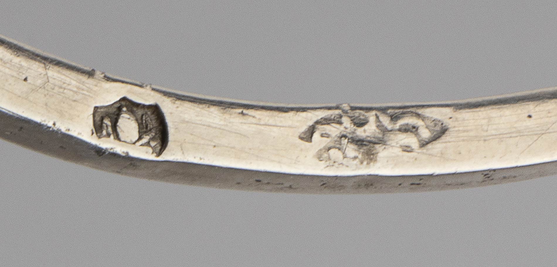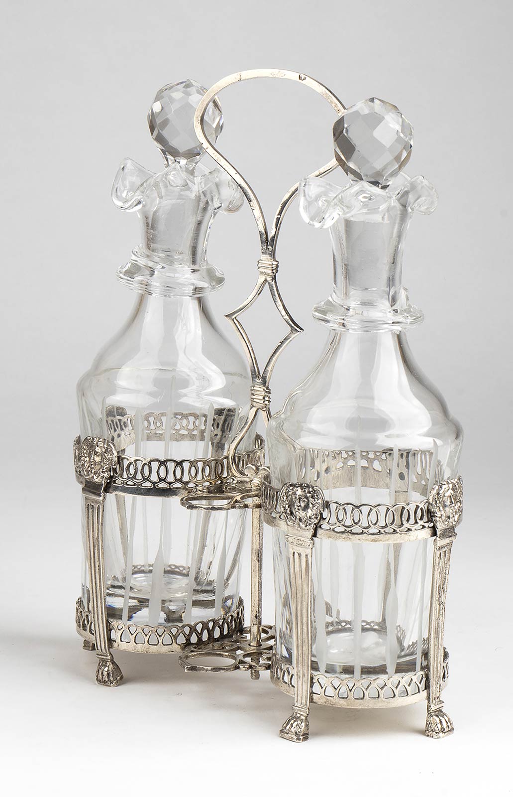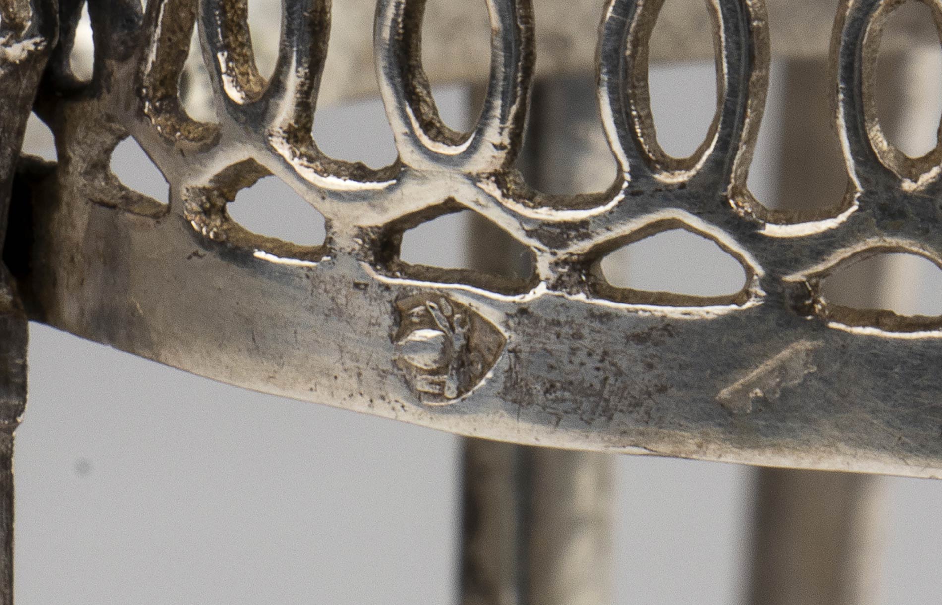 in argento fuso di gusto neoclassico. Punzonata con i marchi in uso a Roma dopo il 1815 per l'argento al titolo a 10 once e 16 denari (889/1000) e, probabilmente, con il marchio dell'argentiere Nicolai Giuseppe operante tra il 1793 ed il 1825 (Rif. Anna Bulgari Calissoni, p.317 nr 768). Dimensioni 17 x 7,5 cm, altezza 23 cm. Peso 270/1294 gr. Stato di conservazione: **** buono.