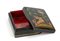 di forma rettangolare con interno in lacca rossa. Dimensioni 9,9 x 7,9 x 3,5 cm. Stato di conservazione: **** buono.