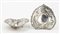 a forma di cuore traforati a motivi geometrici e decorati con volute fogliate. Serie completa di marchi Gorham dopo il 1953. Dimensioni 12,5 x 11,5 cm, altezza 3 cm. Peso 144 gr. Stato di conservazione: **** buono.