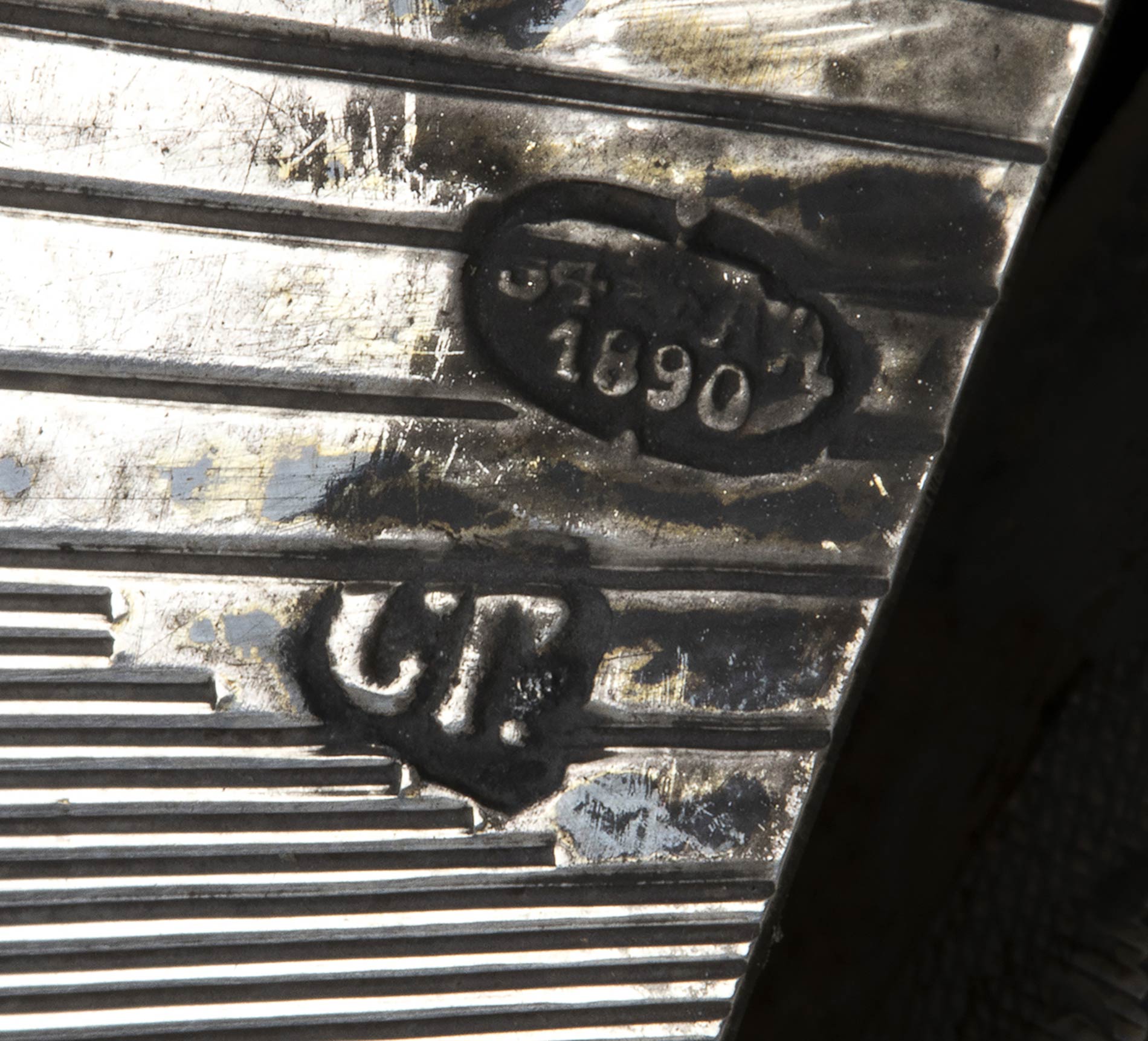 tempera su tavola con riza argento, raffigurante "Madonna con Bambino". Serie completa di marchi per l'argento al titolo di 84 zolotniks (875/1000) in uso a Mosca nel 1890. Dimensioni 22,2 X 18,4 x 3 cm. Stato di conservazione: *** discreto (difetti alla Riza).
