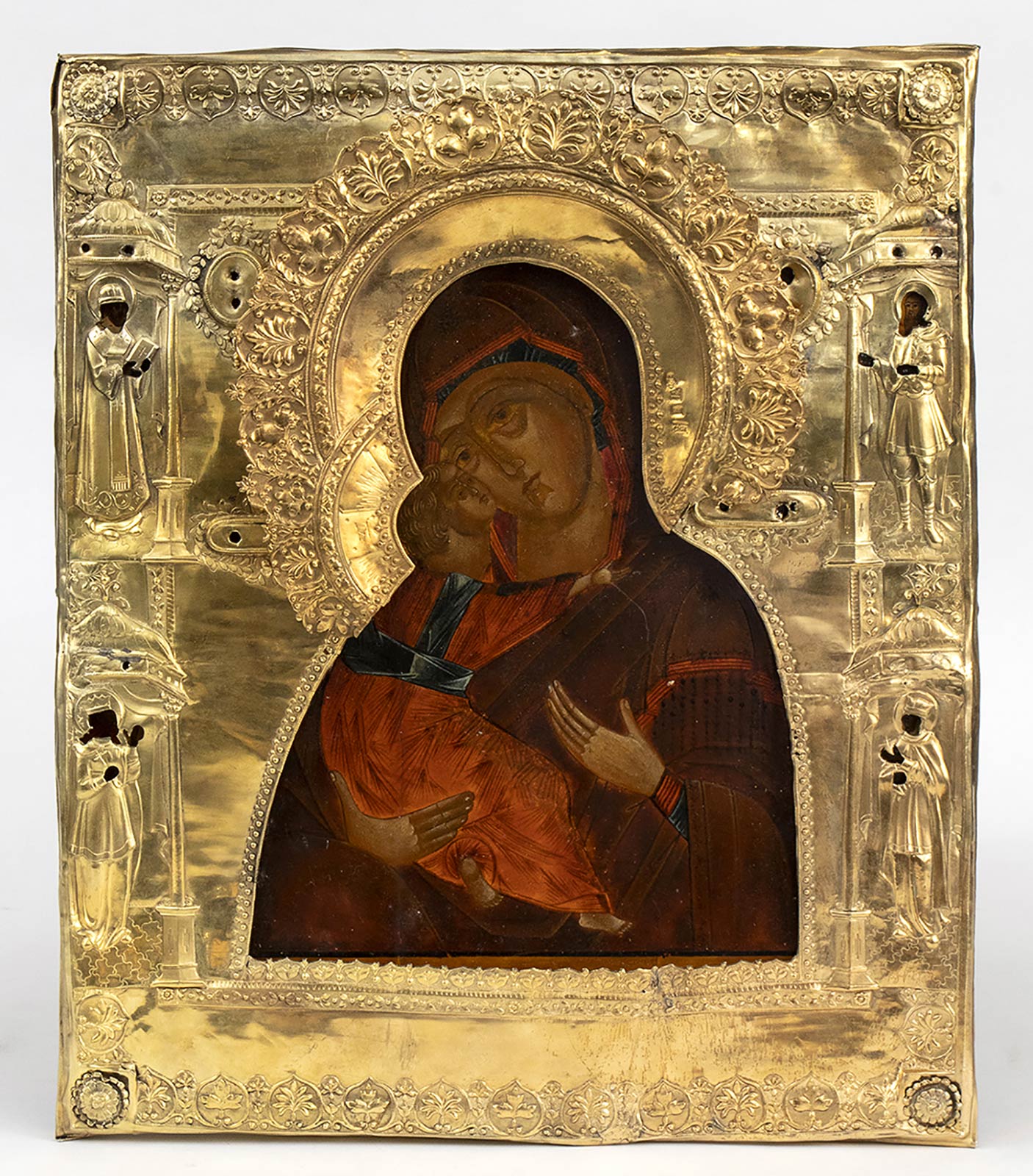 Lot 147 | Icona russa con riza in argento raffigurante Madonna con bambino - Mosca 1827