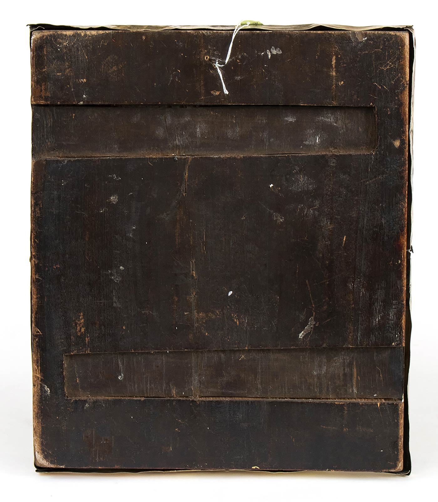 tempera su tavola con riza argento, raffigurante "Madonna con Bambino". Serie completa di marchi per l'argento al titolo di 84 zolotniks (875/1000) in uso a Mosca nel 1827, assaggiatore Nikolay Dubrovin. Dimensioni 35,5 x 30 cm. Stato di conservazione: **** buono.
