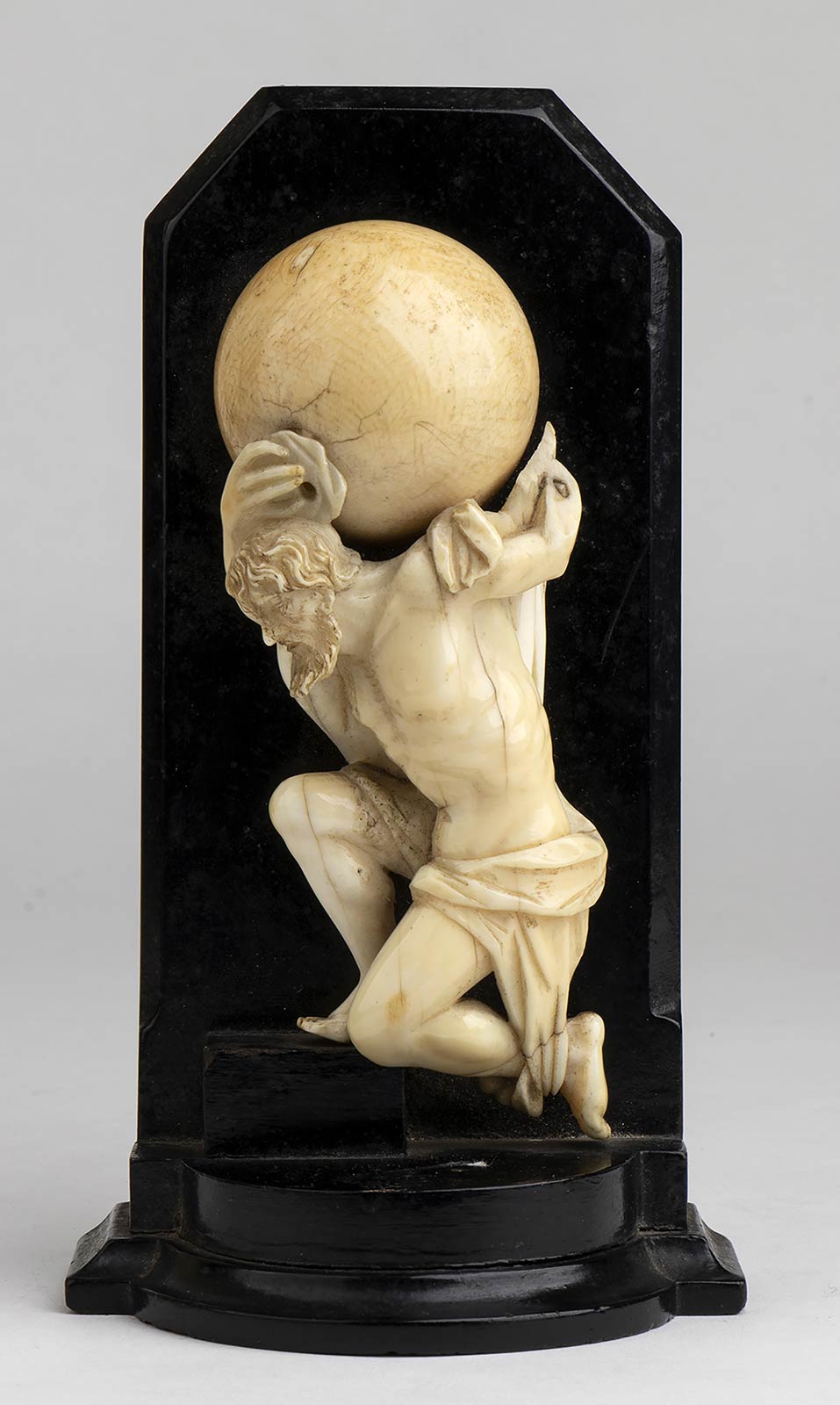 Scultura inglese in avorio raffigurante Atlante - fine xix secolo